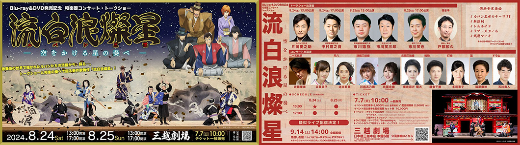 和楽器コンサート&歌舞伎俳優のスペシャルトークショー「流白浪燦星(ルパン三世)―空をかける星の奏べ―」を、8月24日(土)25日(日)の2日間、三越劇場にて開催します。