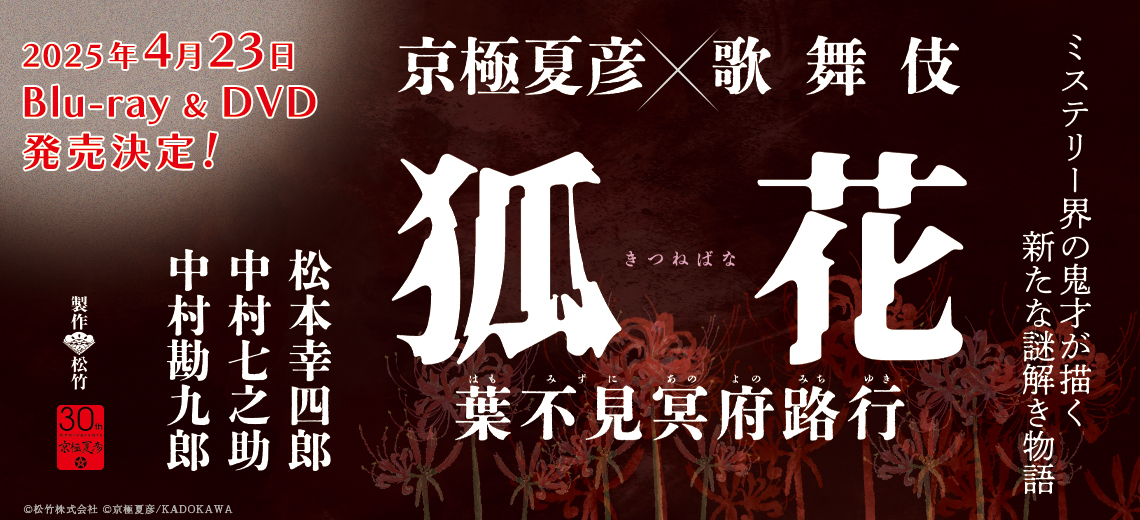 ミステリー界の鬼才・京極夏彦が書き下ろし、脚本も手掛けた 新作歌舞伎『狐花 葉不見冥府路行』(きつねばな はもみずにあのよのみちゆき)が4月23日(水)にいよいよBlu-ray&DVDとなって登場!