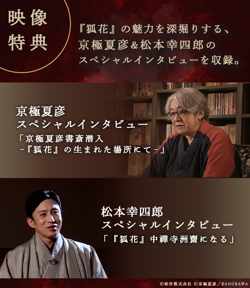 今回映像特典として、京極夏彦そして松本幸四郎のスペシャルインタビューを収録。