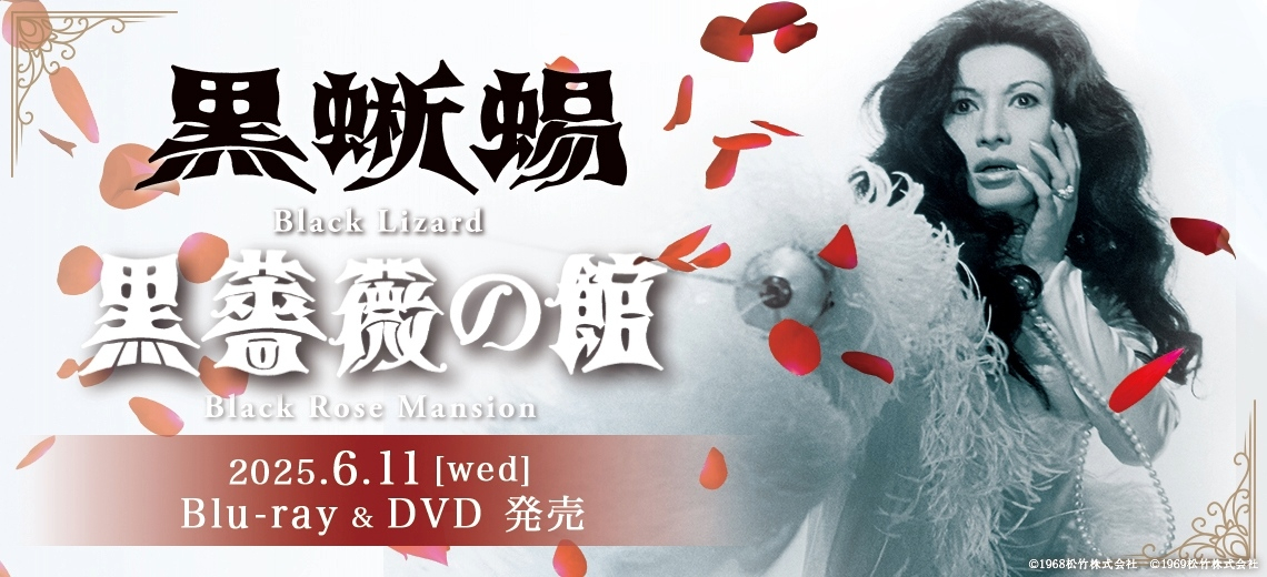 美輪明宏と深作欣二がタッグを組み独創的な世界観を作り上げた、映画『黒蜥蜴』と『黒薔薇の館』がセットとなり、2025年6月11日(水)待望のBlu-ray&DVD化!豪華絢爛なエンターテインメントを、ご自宅で心行くまで堪能いただけることとなりました。