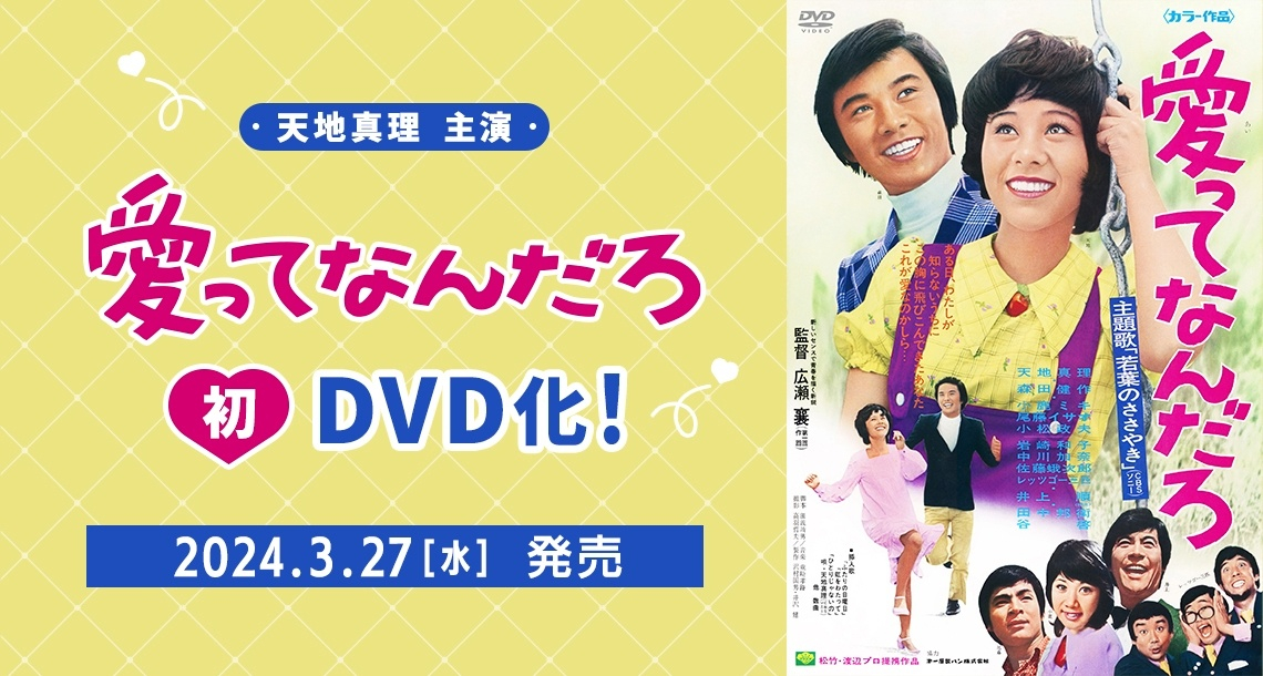 天地真理デビュー50周年記念として2023年3月に初DVD化された、初主演映画『虹をわたって』に続き、主演第2作目 映画『愛ってなんだろ』も初DVD化が決定し、2024年3月27日(水) に発売になります!