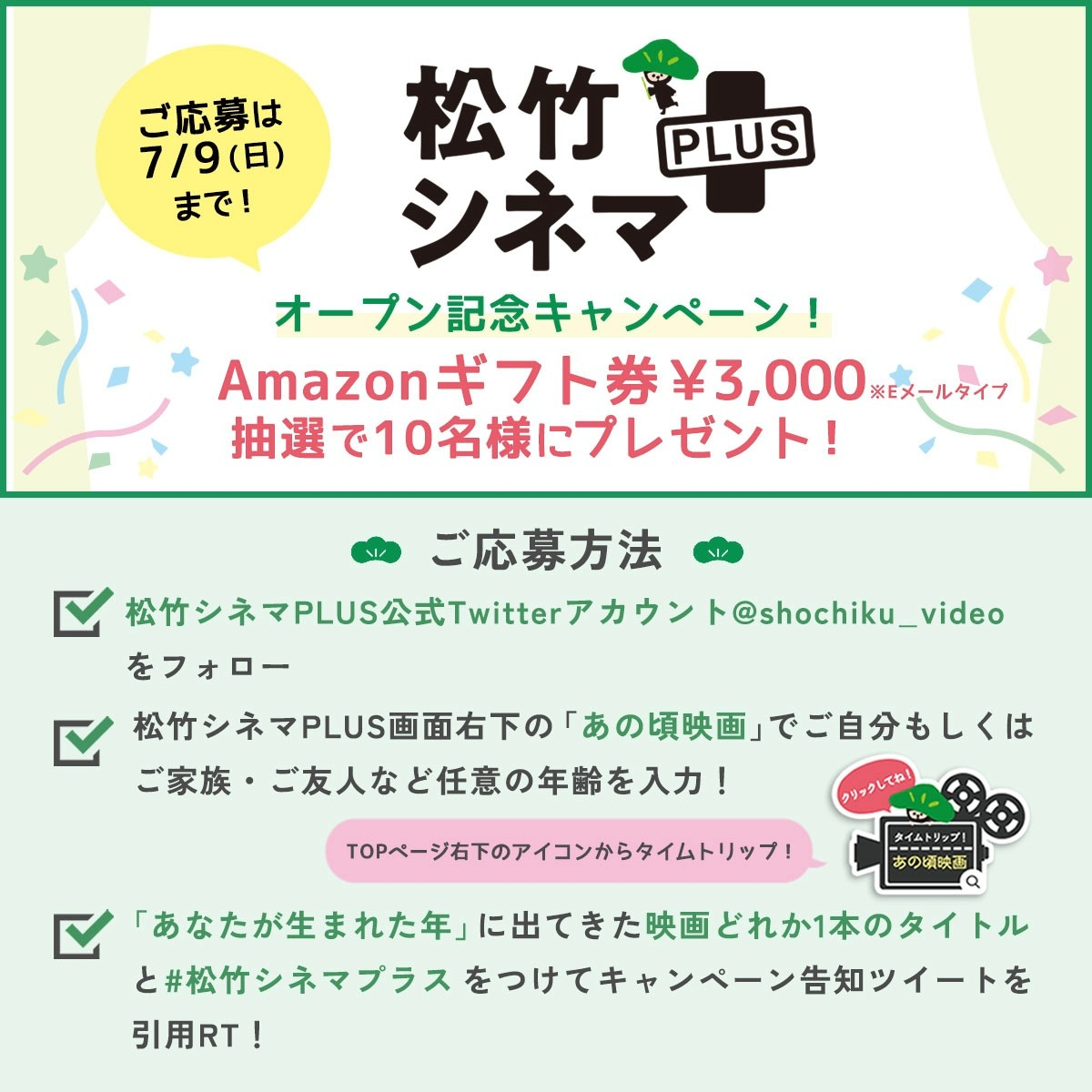「松竹シネマPLUS」オープンを記念して Amazonギフト券¥3,000円(Eメールタイプ)を抽選で10名様にプレゼントキャンペーン開催中!